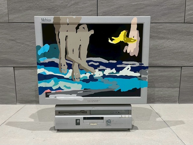 2025 アクリル、モニター 高さ370mm×横350mm×奥行き15mm 斉木 駿介 (さいき しゅんすけ) Shunsuke Saiki 美術家。福岡県生まれ。九州産業大学 博士前期課程 芸術研究科 美術専攻 修了。 私の絵画は現実やネット上のモチーフ、風景、記号を解体、再構築して作られています。 リアルとネットが融合する現代の日常感覚や日々更新されると同時に忘却されていく情報を絵画によって記録できないかと考えています。 主な個展に「リプレイする」(横浜マリンタワー,2024年)、「Skip chapter」(Artas gallery,2023年)「BAD TRIP VR」(京都岡崎 蔦屋書店 GALLERY EN ウォール,2023年)、「スクロールする風景」(GalleryYukihira,2020年)、「スクショする風景」(Artas Gallery,2020年) 「日常とフィクション」(新宿眼科画廊,2019年)、「日常とディストピア」(KANZE ARTS,2019年)。 主な展覧会に「はたからみる」(CASHI 新宿眼科画廊,2023年)、「アーカイブする断片」(MASATAKA CONTEMPORARY,2023年)「メランコリック日常」(Artas Gallery,2022年)、「美術手帖ニューカマーアーティスト展」(GINZA SIX 銀座蔦屋書店,2021年) 、「emerging artists」(500m美術館,2021年)「dpi」(KANZE ARTS,2021年)、「非/接触のイメージ」 斉木駿介・名もなき実昌 2人展(IAFshop*,2020年)ほか。 主な受賞歴に「15th TAGBOAT AWARD」(審査員特別賞 塩入敏治賞,渋谷ヒカリエ,2020年)、「ワンダーシード2018」(入選,トーキョーワンダーサイト渋谷,2018年)。 主な出版物に2021年「美術手帖2月号 ニューカマーアーティスト特集」、「明るい映画、暗い映画 21世紀のスクリーン革命」表紙装丁(渡邊大輔 著)など。