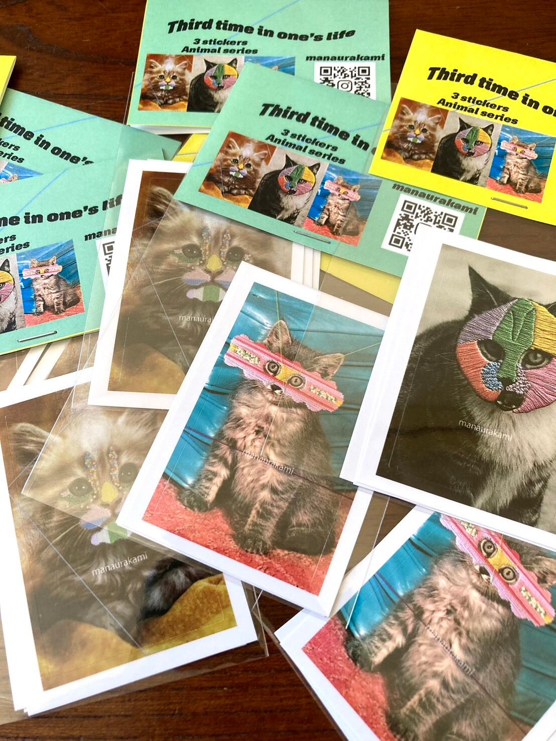 浦上真奈の猫シリーズのステッカー3種セットです。